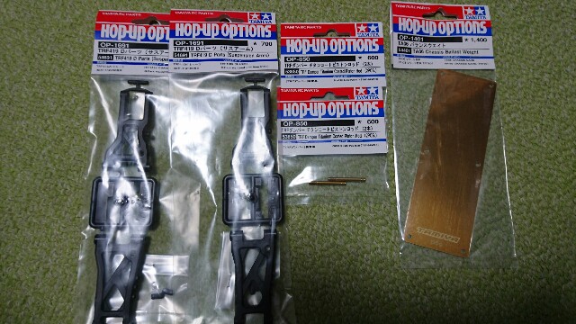 TA07 オプション地獄 その3 8月 08, 2016 カバンにいつの間にか…(二回目)あぁ…なぜ?419のサスアーム(固い)と、重り。ササッと換装。これで、脚は419相当に。3mmリーマーは必須かも。サスピンが渋い。 418脚(純正)と、ダンパー位置が違うので、どう変わるか楽しみ。 ラベル RC コメント